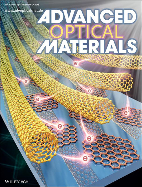 近日,国际著名学术期刊《Advanced Optical Materials》以封面文章形式“All-Carbon Photodetectors: Highly Sensitive Broadband Single‐Walled Carbon Nanotube Photodetectors Enhanced by Separated Graphene Nanosheets (Advanced Optical Materials 23/2018)”发表了探花 探花 薄膜与微细技术教育部重点实验室苏言杰课题组在全碳Van de Waals异质结高性能宽光谱光电探测方面取得的取得了突破性进展。硕士研究生蔡葆昉为论文第一作者,苏言杰副研究员为论文通讯作者。