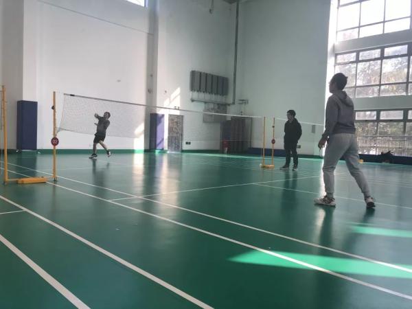 像是特意为了今天的比赛,在连续一周的阴雨天之后,天气终于放晴了。虽说比赛在室内进行,空气依然寒冷,但明媚的天气还是让大家的心情更加舒畅,活力十足。中午12点半,老师们开始陆陆续续赶到比赛场地了。和平时忙于科研和教学的形象不同,今天的老师们一身利落的运动服,穿着专业的运动鞋,甚至都带着自己专用的羽毛球拍,显得干练、充满活力又斗志昂扬,到场馆没多久,便纷纷活动起来。简单的热身和练习之后,下午一点,比赛正式开始。从1号场地到5号场地分别同时进行女单、女双、混双、男单和男双的比赛。