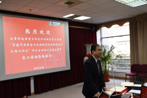 2018年2月24日,国家重点研发计划纳米科技重点专项“胃癌早期筛查与全病程监测的纳米技术及转化研究”项目启动及方案实施研讨会在探花 电信学院3号楼208会议室召开。科技部项目管理中心闫金定处长,上海市科委基础处王兵、探花 科研院孙丽珍副院长,电信学院院长毛军发院士,项目专家组专家刘昌胜院士、庞代文教授、申有青教授、顾忠伟教授、何丹农教授、樊春海教授、赵建龙教授、李亚平教授、曹成喜教授、马俊院长和马俐君主任,项目负责人崔大祥教授、倪健教授、金庆辉教授、汪联辉教授、何农跃教授、王雪梅教授及钱卫平教授等项目团队骨干成员,以及交大仪器系部分老师、学生出席了启动会。