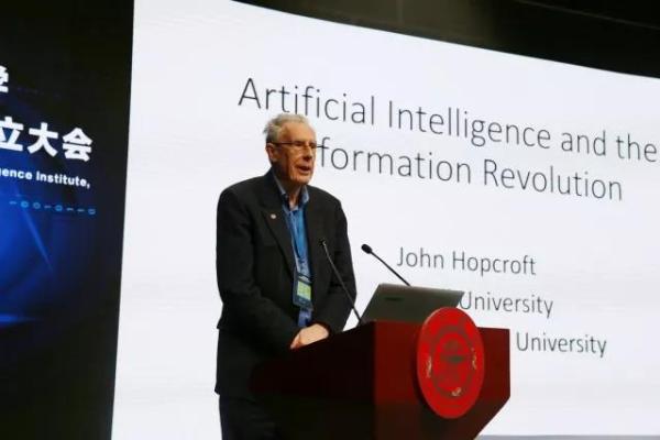 人工智能领域的专家学者汇聚一堂,就人工智能开展高峰论坛。论坛由毛军发主持。中国科学院外籍院士、图灵奖得主John Hopcroft做了题为 “Artificial Intelligence and the Information Revolution” 的报告,深入探讨了人工智能在新一轮信息革命中所扮演的重要角色。国家新一代人工智能战略咨询委员会成员、阿里云人工智能首席科学家闵万里带来了“AI的产业下沉之路”的报告,他表示,人工智能的发展目标应该以产业领域的痛点作为导向,以计算、场景和数据做作为驱动,用数学语言对人工智能给予充分合理的解释,才能给产业更多的支持,达到产业所追求的一致性和稳定性。浙江大学计算机学院副院长吴飞带来了“新一代人工智能与挑战”的报告,他表示,新一代人工智能将面临如何从数据驱动到数据驱动与知识引导相互结合、从完全信息下的博弈向非完全信息下的博弈和从单一媒体学习到跨媒体推理的挑战,新一代人工智能需结合数据利用、知识引导与能力学习。