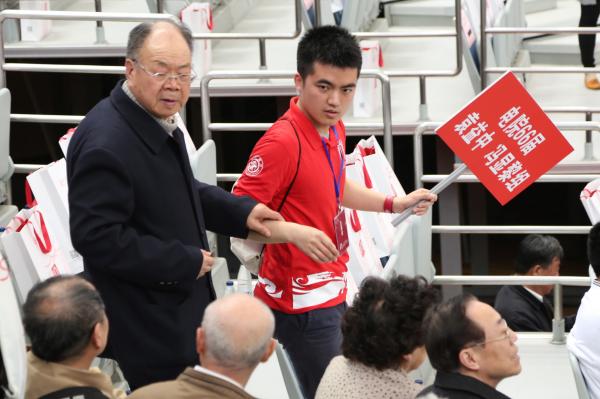 清晨6点左右,晨光熹微,跟车组志愿者就前往徐汇校区迎接老一辈交大人的到来,抬水、举牌、引导登记上车有条不紊,严谨认真的工作态度展现出志愿者的高素质。而此时分设两校区的大棚志愿者也紧锣密鼓准备起来,帐篷搭建、礼品袋管理等工作有序开展。9点左右,载着电院校友的巴士缓缓驶入综合体育馆广场,守候多时的志愿者们主动迎上前去引导至电院大棚处签到并发放礼品,登记完毕后,志愿者以班级为单位带领学长们入馆就座观看校庆大会。挥舞院旗、高举班牌、沿途维持秩序、搀扶高龄校友入座……随处可见志愿者忙碌的身影,而身披蓝色马甲的电院志愿者们,也构成了校庆下一道独特的风景。大会结束后,班级志愿者带领各班校友用餐。下午,校友们在志愿者陪同下参观校园追忆曾经的美好。
