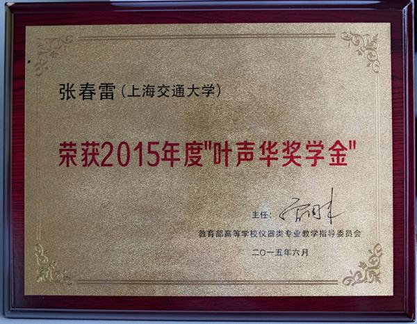 2015年6月,经教育部高等学校仪器类专业教学指导委员会专家评选,我院仪器科学与工程系博士生张春雷同学以优异的学习成果获得2015年度“叶声华奖学金”。