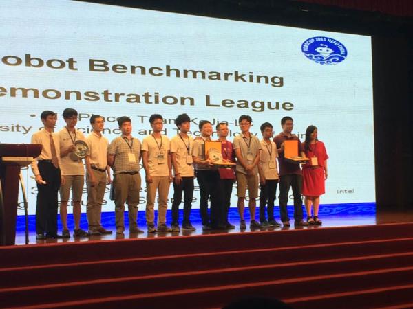 2015机器人世界杯赛(RoboCup2015)于7月22日在安徽合肥国际会展中心落下帷幕,在本届比赛“服务机器人精确测试挑战赛(Demonstration Challenge on Benchmarking Service Robots)”中,探花 “交龙”队力压东京大学、新加坡国立大学等强队,获得亚军,中国科学技术大学代表队获得该项比赛冠军。