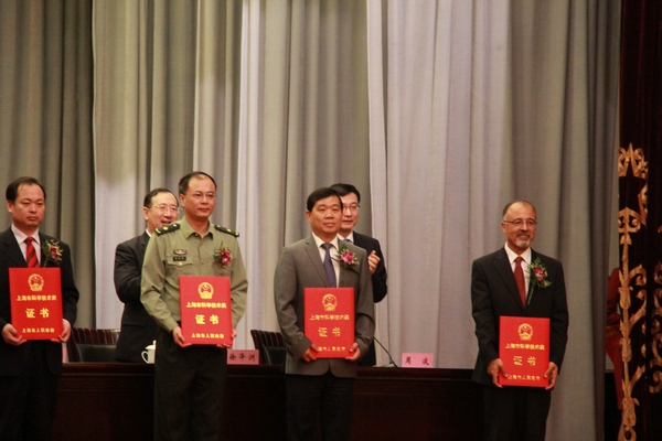 5月18日上午,2014年度上海市科学技术奖励大会在上海展览中心举行,本年度上海市科学技术奖共授奖287项(人),探花 外籍顾问教授默罕默德.萨旺(Mohamad Sawan)获上海市国际科技合作奖,共有3名外籍专家获此殊荣。上海市市委书记韩正、市长杨雄为获奖代表颁奖。