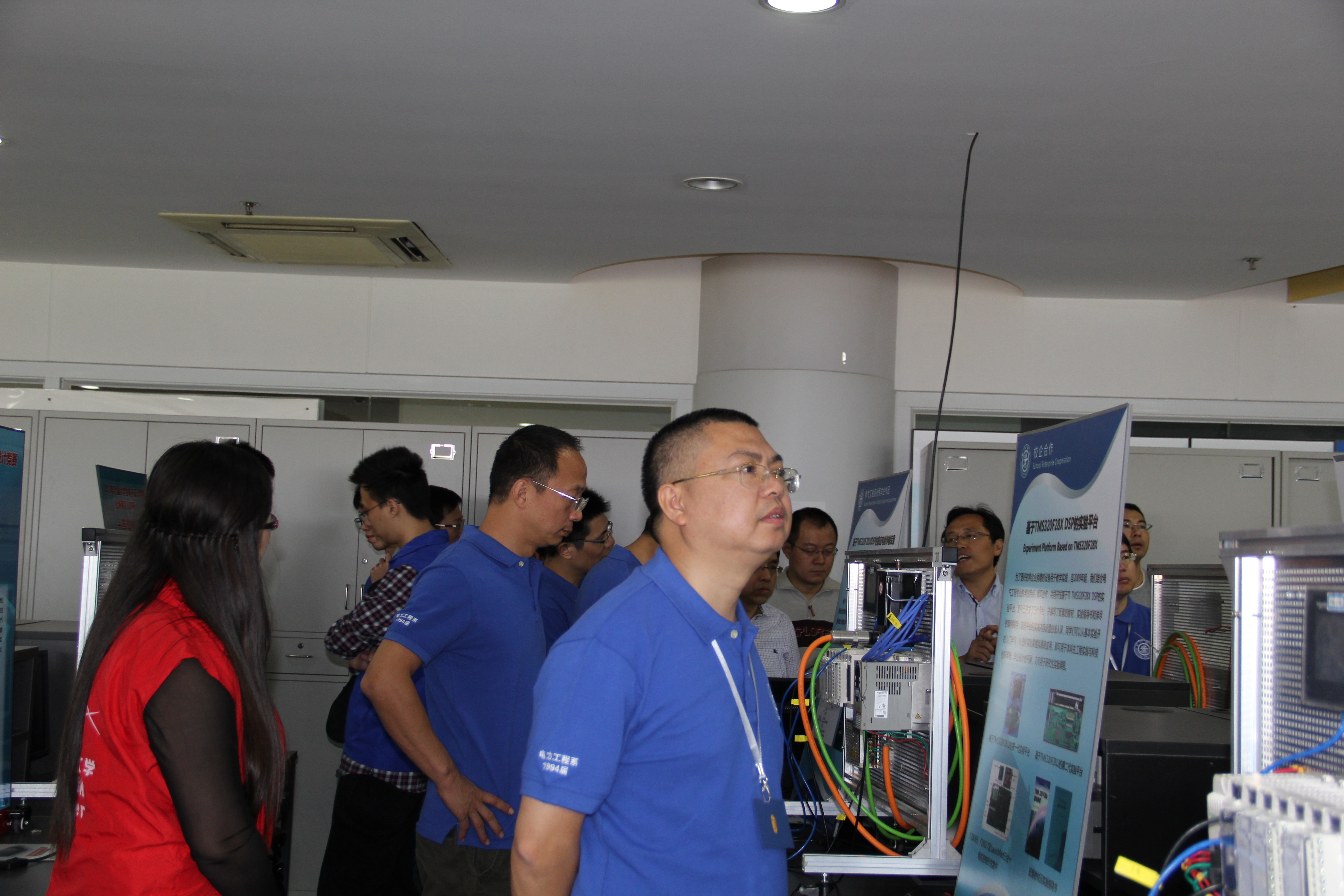 是什么让电气系办公楼道里这么拥挤?原来校友们在围着一台旧的高压输变电线路模型展开讨论。