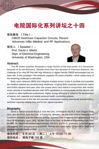 Speaker: Prof. David J. Allstot, Dept. of Electrical Engineering, University of Washington, USA