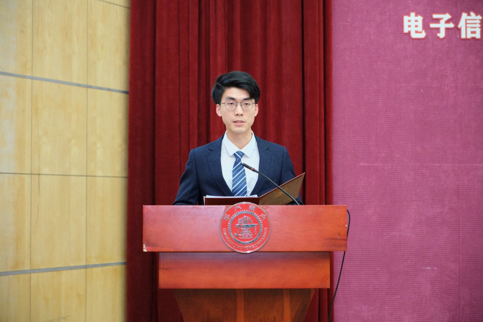 姚成超代表校学联致辞。他表示电院研究生会在过去的一年中,在引领先进思想、丰富校园文化生活、维护学生权益、加强组织建设等方面都展现出了稳健与创新并重的成效,希望选举产生的新一届主席团能够扛起电院研会大旗,用青春的智慧和汗水为同学们提供更好的服务。