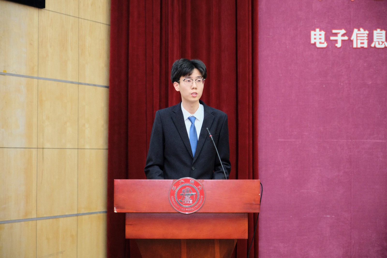 巢睿祺代表学院党委致辞。他对大会的召开表示祝贺,对校团委及兄弟院系团委的关心和支持表示感谢。巢睿祺表示,电院学子锐意进取,全面发展,研究生会求真务实,砥砺前行。他寄语电院青年,提出三点希望:一是要心怀壮志,坚守理想,坚定不移跟党走;二是要深学笃行,奋发有为,矢志行业报国志;三是要开拓创新,勇于担当,争做时代弄潮儿。