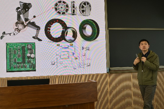 青年教师华浩、高飞、刘明、盛杰、吴超、黄淳驿,博士生代表高聪哲为同学们介绍了电气工程的热门领域,包括电机及控制系统、电力电子系统、新能源与汽车电子、超导电力、电力市场以及船舶综合电力系统。各位老师深入浅出,将研究方向结合当下最新产业领域,为同学们带来了一场生动有趣的科研介绍。