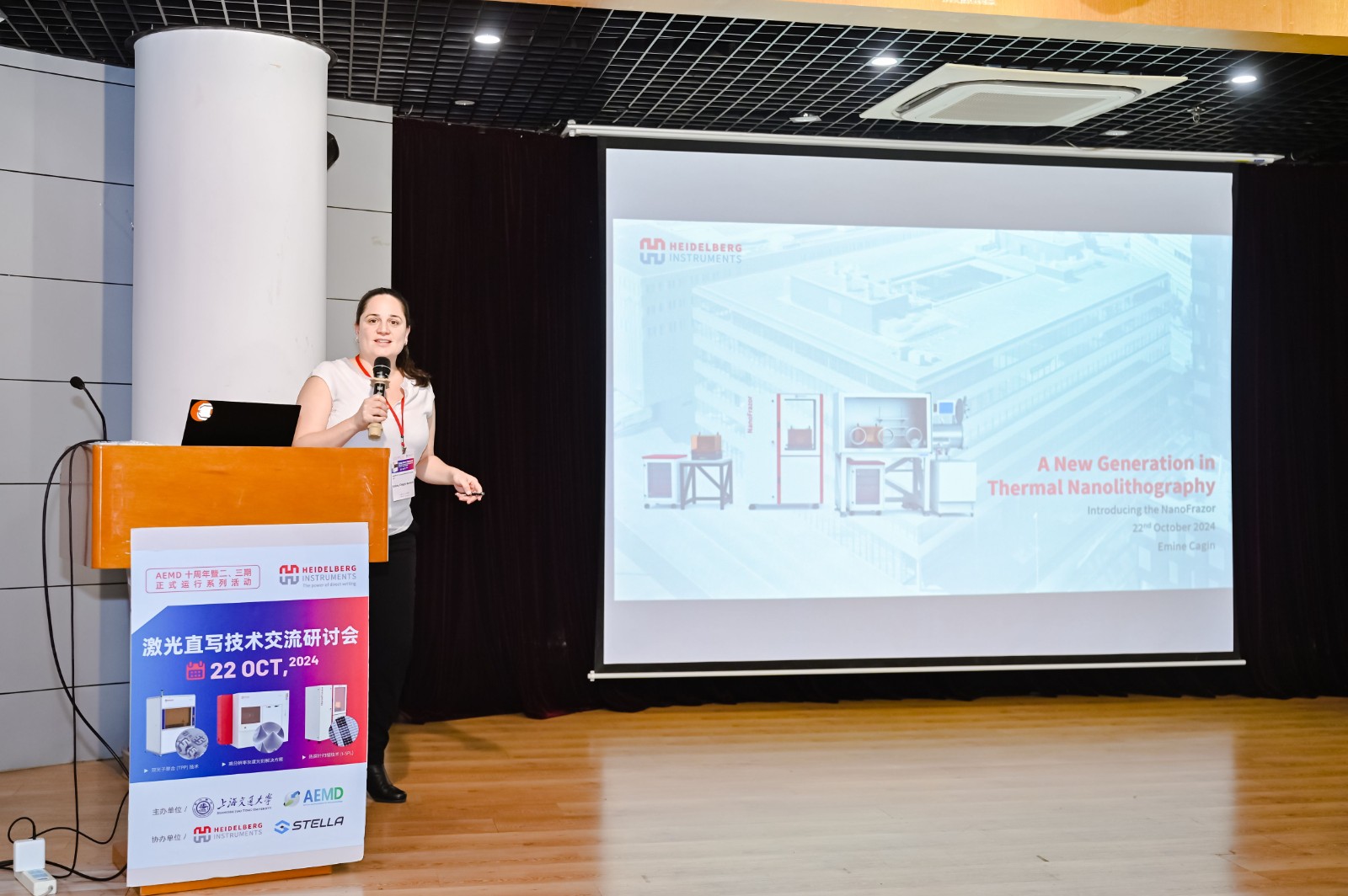 海德堡公司激光直写与灰度曝光、双光子三维图形打印技术专家Benedikt Stender带来题为“双光子聚合技术在3D微光刻和微信打印中的作用”的学术报告,并通过丰富案例展示这一技术在精密制造和纳米结构构建方面的重要作用。Stender先生的演讲内容深入浅出,吸引与会者在现场展开热烈讨论。