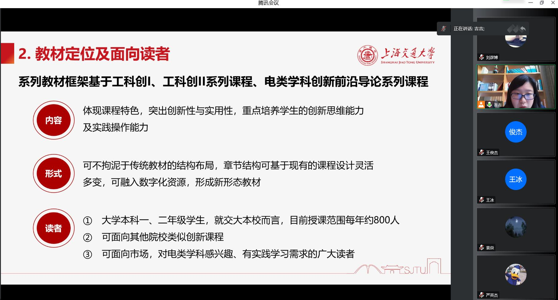 教学发展与学生创新中心主任裴凌老师,首先对介绍了讨论会的缘起。本次教材讨论会基于“工程实践与科技创新”系列课程内容,“工程实践与科技创新”系列课程面向电院本科生。学生通过该课程学习及实践训练,令自身的科学思维、工程意识和专业素养得到初步的专业化塑造。目前国家对本科生教材建设工作越来越重视,学院也在去年成立了教学指导委员会,可见学院对本科生教材建设的支持力度。中心邀请了出版社刘玉喆老师将根据对应的方针和政策,宣讲教材的申报工作,并通过培育优秀教材项目。同时中心与出版社加强合作等方式主动做好学院中心教材建设的服务与保障工作,也欢迎所有老师对学院中心实践类教材工作出谋划策。