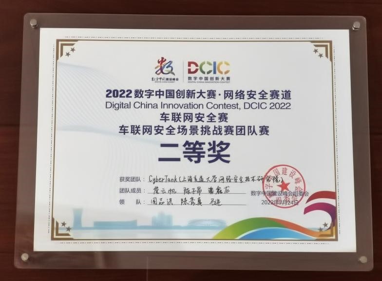 网络安全技术研究院的CyberTank车联网攻防战队经过4月6-8日为期三天的线上选拔赛的激励角逐,从来自全国20个省份的165支参赛队伍中挺进决赛,再历经6个小时的线下赛鏖战,从全国33支决赛战队中脱颖而出,以车联网安全场景挑战赛团队赛第二名的成绩获得二等奖,刷新了战队去年首次组队获得全国车联网攻防挑战赛铜奖的最好战绩。