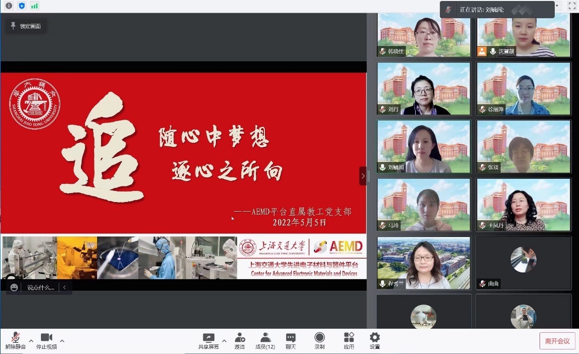 “青年如初春,如朝日,如百卉之萌动,如利刃之新发于硎,人生最可宝贵之时期也。”以青春之态,励青春之志,5月5日,AEMD平台直属教工党支部围绕“追随心中梦想 追逐心之所向”开展主题党日活动,以“云上青春秀”和“抗疫手势舞”的形式响应时代号召,献礼五四青年节。