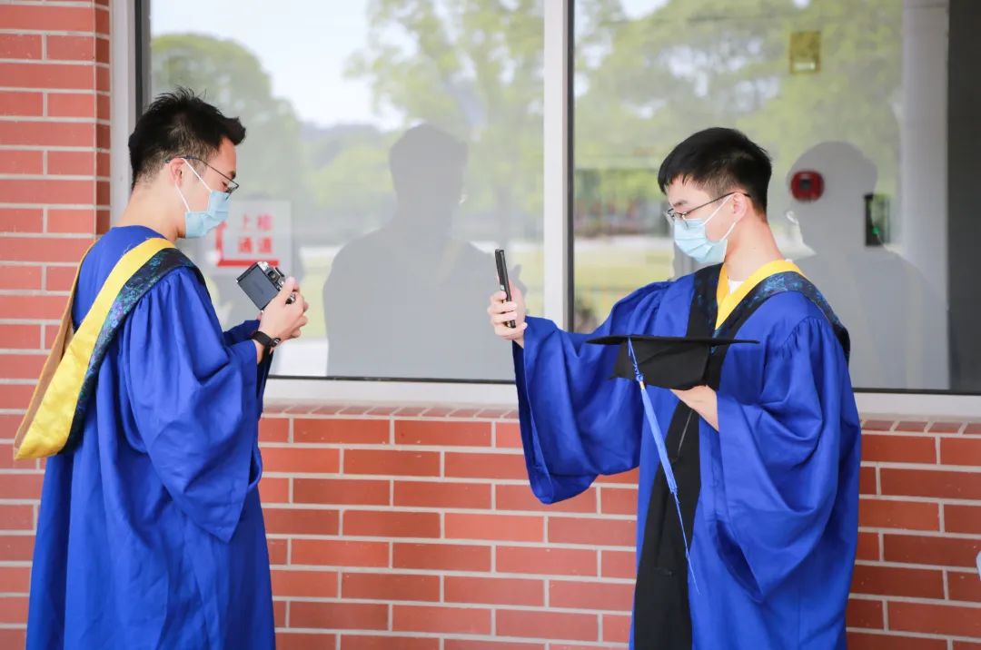 考虑到同学们拍照留念的需求,学院提前准备了一批学位服,供毕业生们在符合防疫规定下使用。为了增添证书领取的仪式感,学院领导和导师代表在现场为学生代表进行了简短的拨穗仪式,尽可能让同学们在特殊的毕业季不留遗憾。