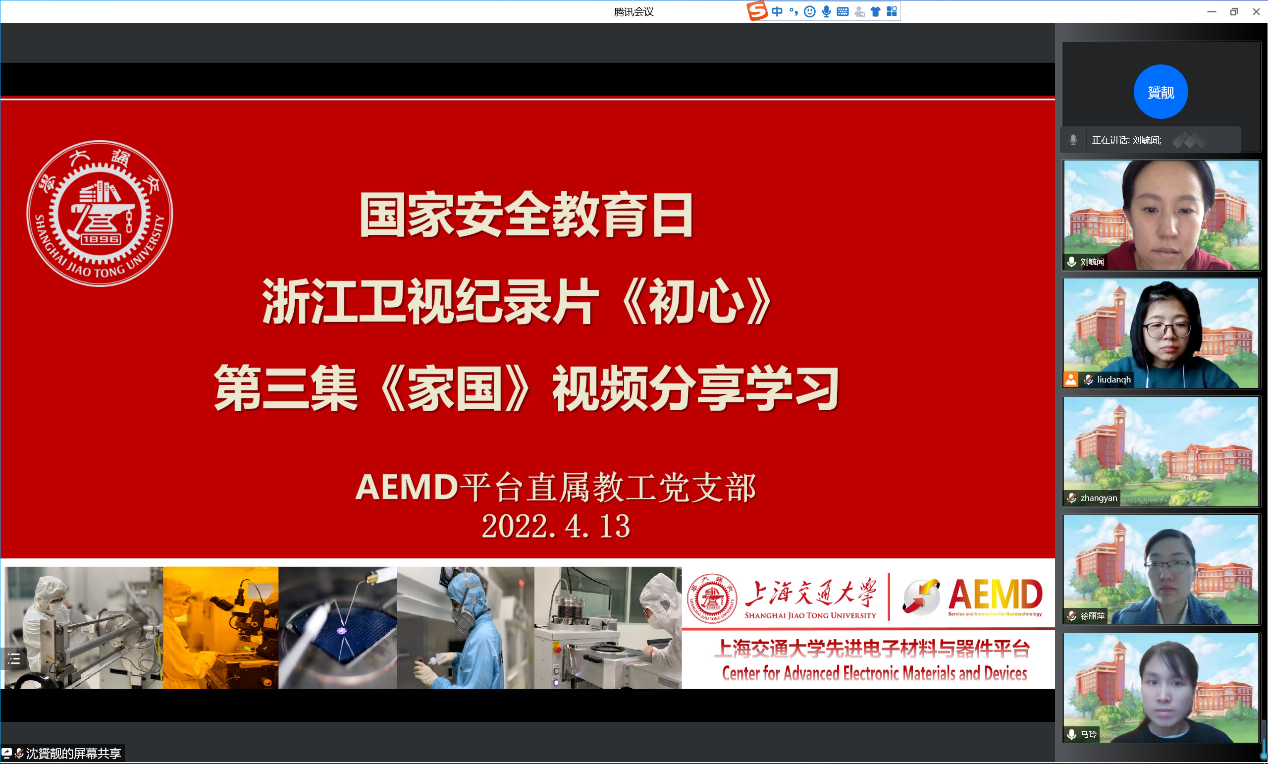 有“将初心使命融入本职工作”的信念,同样有“家国情怀”的引领照耀。平台本月第二次理论学习召开之际,正逢我国第7个“全民国家安全教育日”,为进一步在党员群体中增强全民国家安全意识,学习感悟新时代国家安全成就,强化党员同志的大局观,AEMD平台集中观看学习宣传教育片《初心——家国》,以“国家安全教育日”为学习切入点,激发大家就“国家安全人人有责”展开讨论。