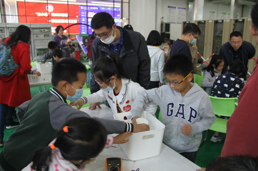 “交小苗”们随后参观了能源互联网平台及其“数据大脑”—能源互联网控制中心,进一步了解了校园智慧能源管理的理念和能源监测系统的主要功能。在能源互联网平台展示后,“交小苗”们又进行了“金属蕴能——伏打电堆”动手实验。党员志愿者们首先对实验原理,操作步骤进行了讲解,并将关键部分进行展示,随后由小朋友们自己动手完成实验。“交小苗”们热情高涨,全身心地投入,虽然实验过程中会出现问题,但孩子们积极思考,认真排错,最后都成功完成实验。家长们表示本次实验提高了“交小苗”们分析问题、解决问题的能力,令他们受益匪浅。