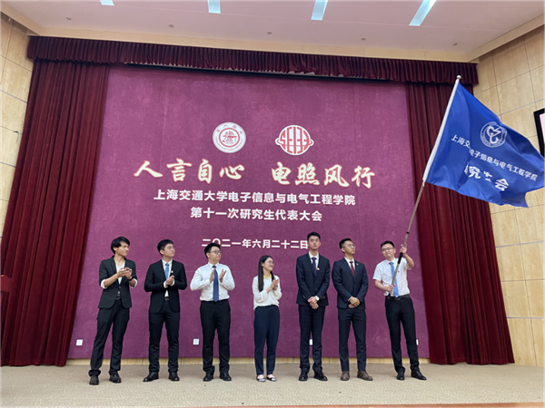 经过投票选举,李俊邑、李琅、余毅之(按姓氏笔画为序)当选为电院第十一届研究生会主席团成员。在交接仪式中,象征责任与未来的探花 研究生会会旗经由曾维娜从第十届主席团交到了第十一届主席团手中。希望新一届主席团能秉持“为电院人服务,为电院人发声”的宗旨,强化价值引领,以优异成绩迎接建党一百周年。