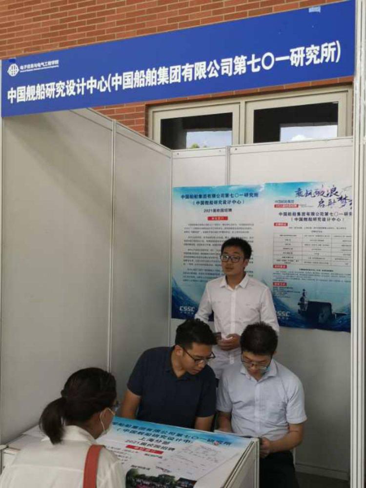 分享会现场热闹非凡,各企业展位整齐有序地分布在电院3号楼东侧长廊,数百名毕业生们手持简历进场求职,和单位代表面对面交流招聘计划、岗位需求、工作内容、发展前景、薪资福利等信息,并向心仪的单位直接投递简历,不少同学已经和用人单位达成初步就业意向。刚刚入职中国船舶重工集团第七〇一研究所的我院校友彭志鹤也来到了现场宣讲。现场还有不少来自非毕业年级的学生前来感受求职氛围,收集就业信息,为职业发展道路早做规划。