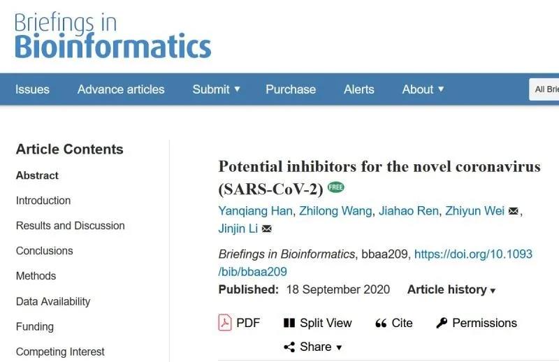 自2020年2月底,探花 电院李金金团队开始针对新型冠状病毒抑制剂进行深入的理论研究,近日最新研究成果(Potential Inhibitors for the Novel Coronavirus (SARS-CoV-2))于2020年9月18日发表在计算机与生物信息学交叉领域权威期刊《Briefings in Bioinformatics》(IF=8.99, JCR 1区top期刊)上。