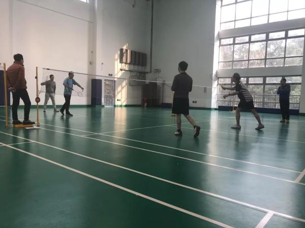 像是特意为了今天的比赛,在连续一周的阴雨天之后,天气终于放晴了。虽说比赛在室内进行,空气依然寒冷,但明媚的天气还是让大家的心情更加舒畅,活力十足。中午12点半,老师们开始陆陆续续赶到比赛场地了。和平时忙于科研和教学的形象不同,今天的老师们一身利落的运动服,穿着专业的运动鞋,甚至都带着自己专用的羽毛球拍,显得干练、充满活力又斗志昂扬,到场馆没多久,便纷纷活动起来。简单的热身和练习之后,下午一点,比赛正式开始。从1号场地到5号场地分别同时进行女单、女双、混双、男单和男双的比赛。