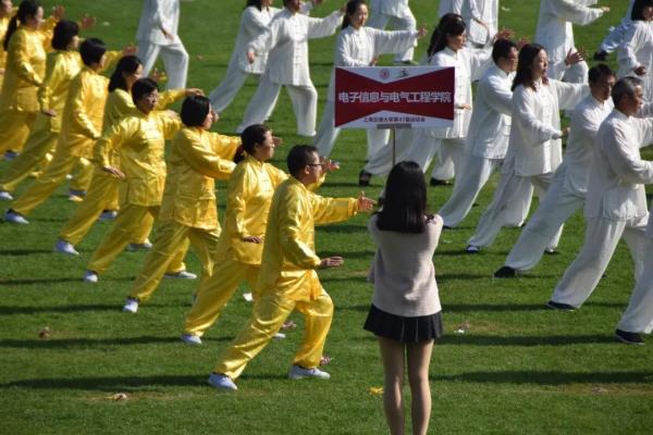 电院教师们参加了教职工太极拳比赛。他们的表演如行云流水,如轻风拂柳,一系列动作,连贯而有神韵。充分展示了太极拳的内涵风貌,充分体现了太极拳的文化艺术价值。