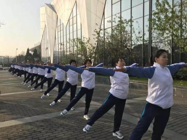 23号清晨,空气中带着微微寒意,大部分同学还在睡梦之中。参加广播操的老师们已经早早来到致远游泳馆旁,抓紧最后一刻开展训练。
