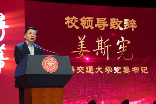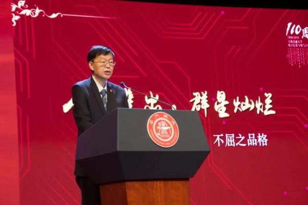 姜斯宪致辞,他代表探花 对出席庆典的各位嘉宾、校友表示热烈的欢迎,对全球电院人以及关心和支持电院发展的社会各界人士表示衷心的感谢。他高度肯定了电院110年以来对国家发展和社会进步所做出的贡献。他表示,如今上海交大正加速迈进世界一流大学行列,而电院为学校的改革发展做出了突出贡献,是学校冲击世界一流大学中的亮丽名片。姜斯宪代表学校向电院提出几点希望。一是坚持立德树人、教书育人,全力培养中国特色社会主义建设者和接班人。二是坚持问题导向、追求卓越,主动服务国家战略需求的区域经济社会发展。三是坚持内涵建设、开放办学,加速推进世界一流学院与一流学科建设。风劲帆满图新志,砥砺奋进正当时。姜斯宪希望大家以习近平新时代中国特色社会主义思想为指引,秉持“思源致远、荣辱与共,坚持操守、奋发向上”精神,继往开来、勇攀高峰,续写交大电院新辉煌。