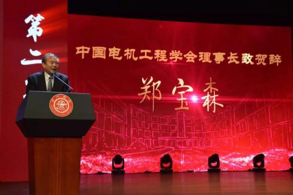 郑宝森宣读中国电机工程学会贺信,他代表中国电机工程学会向电院全体师生和海内外校友致以热烈的祝贺和诚挚的问候。他表示,中国电机工程学会与探花 有着深厚的历史渊源,多年来,学会与电院相互交流,相互促进,建立了深厚的友谊和广泛的合作关系。郑宝森期望双方继续加强交流与合作,共同为我国电力行业的发展做出更大的贡献。最后,他祝愿电院以更高的历史站位、更广阔的国际视野、更深邃的战略眼光,做学科建设的奋斗者和布局者,在双一流建设中阔步迈进。
