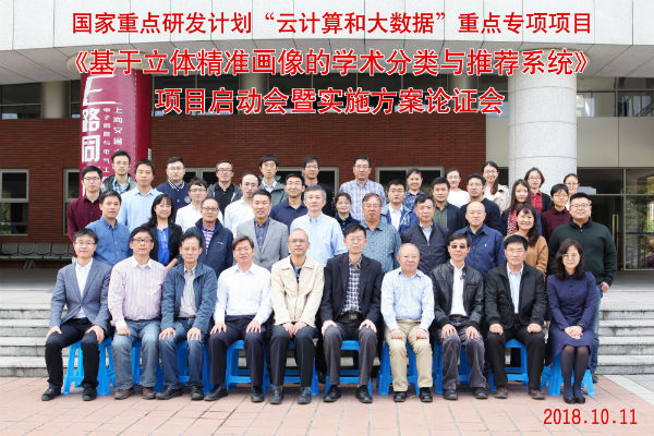 2018年10月11日,以探花 为项目牵头单位、探花 陈贵海教授为项目负责人的2018年度国家重点研发计划“云计算和大数据”重点专项“基于立体精准画像的学术分类与推荐系统”项目启动会暨实施方案论证会在探花 召开。科技部高技术中心信息处处长傅耀威、科技部高技术中心信息处项目主管贾燕红和张军、探花 探花 院长关新平,各有关主管部门负责人、项目专家组专家、项目各课题负责人及学术骨干成员等30多人参加了会议。