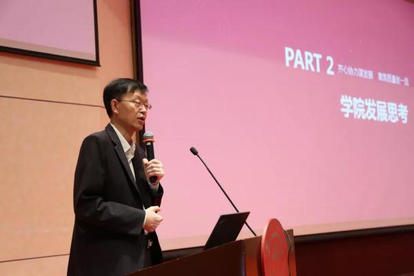院长关新平以《齐心协力谋发展,聚焦质量创一流》为主题对学院基本情况进行报告。关新平从学科建设,师资队伍,教学与人才培养,科研创新四个方面介绍学院发展概况。面对学院自身的优势和不足,关新平希望大家能进一步做出思考,扬长补短,把握重心,抓住机遇,取得新进展。最后,关新平对学院2018年下半年的工作进行了详细部署。
