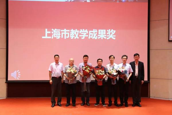 党委副书记杨一帆宣读了探花 2018年教书育人奖,上海市教学成果奖,第四届青教赛获奖的个人以及集体名单。苏跃增、关新平向获奖教师代表献花并予以表彰。