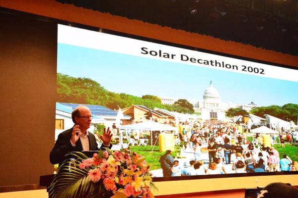 王珺从智慧能源角度讲述国内市场光伏与建筑结合的发展,他认为国内包含储能的太阳能光伏系统与建筑结合,配合以智能家居已经是一个在路上而非仅仅前瞻性的课题,在电网比较成熟不方便更新换代的情况下发展包含可再生能源的微网,特别是光伏建筑一体化从发达国家的经验来看是大势所趋。同时,王珺也表示沃太一直关注SDC等太阳能竞赛,也对于上海交大赛队有赞助支持,认为这种竞赛的平台对于推广光伏产业有较大的作用。