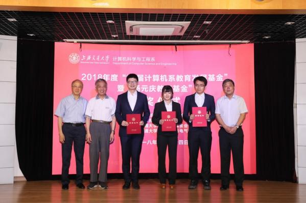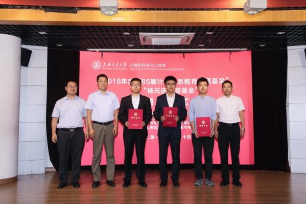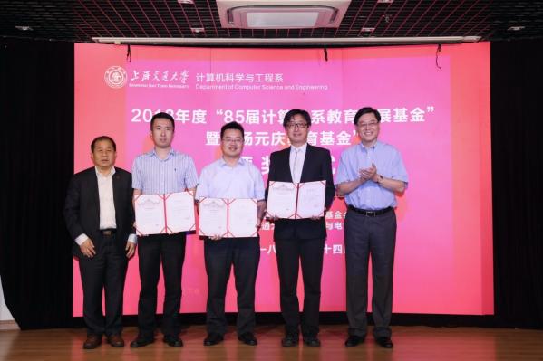6月24日,2018年度“85届计算机系教育发展基金”暨“杨元庆教育基金”颁奖仪式在电信3号楼200号报告厅隆重举行。联想集团董事长兼CEO杨元庆学长、中国联通集团 CEO兼副董事长陆益民学长、加拿大工程院院士凌晓峰学长、ODE咨询公司中国区总经理钱蓬学长、卢建军学长、孙瑞铭学长等计算机系85届校友回到母校参加颁奖仪式。探花 校长、中国工程院院士林忠钦、探花 副校长张安胜、探花 教育发展基金会副秘书长殷洁、探花 探花 党委书记苏跃增、探花 探花 副院长邰能灵、副院长朱燕民、计算机系主任过敏意、计算机系党总支书记张丽清、原交大党委副书记计算机85届辅导员潘永华老师、计算机85届班主任侯文永老师,以及计算机系部分师生代表出席颁奖仪式。仪式由基金会秘书长卢建军主持。