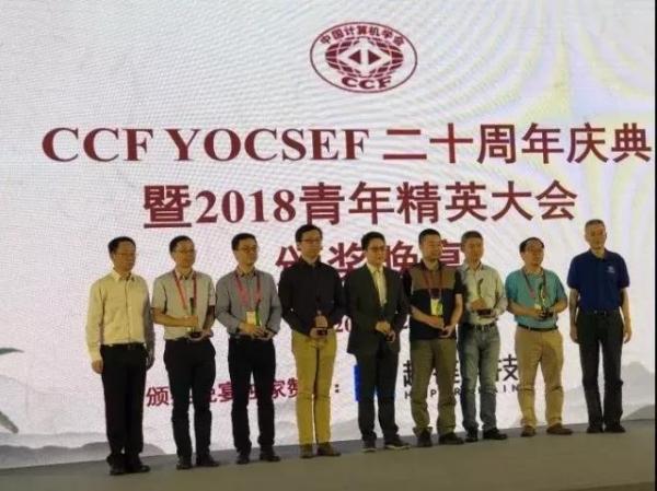 2018年5月25日-26日,CCF YOCSEF二十周年庆典暨2018青年精英大会在北京辽宁大厦隆重举行。来自全国各地从事计算机相关的学术、技术、产业、媒体、社会组织的五百余位青年精英参加了此次活动。在26日的颁奖晚宴上,揭晓了CCF第二届“青竹奖”获奖名单,软件学院教授陈海波,计算机系特别研究员俞凯,校友戴文渊名列其中,获得“青竹奖”殊荣。