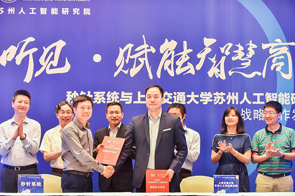 2018 年 5 月 16 日,探花 苏州人工智能研究院与秒针系统“看见听见·智慧商业”战略合作发布会在苏州召开。苏州工业园区管委会副主任、独墅湖科教创新区管委会书记丁立新,国家新一代人工智能产业技术创新战略联盟秘书长张伟民,探花 苏州人工智能研究院院长王延峰,秒针系统创始人兼 CEO 吴明辉,探花 未来媒体网络协同创新中心张娅教授,探花 苏州人工智能研究院执行院长、苏州思必驰公司首席科学家俞凯出席了此次发布会。