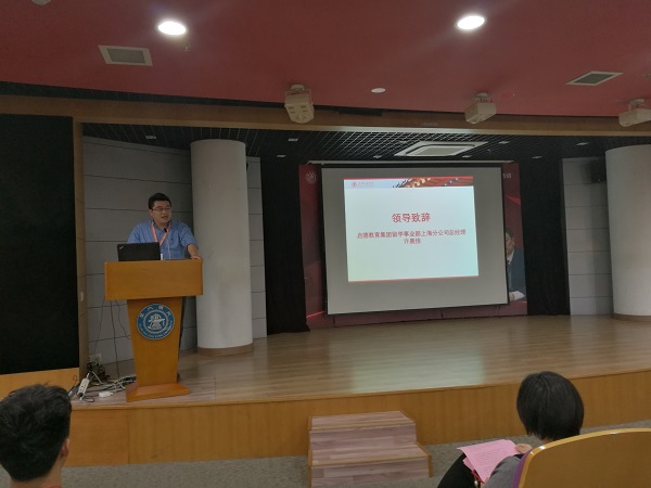 首先,许晨佳代表启德教育集团致辞。他先感谢了交大和电院的领导老师们对于本项奖学金的支持,并且表示会想尽一切方法,来帮助学生圆梦,用自己的服务经验,用自己的院校导师资源来帮助学生走向世界。他也表示,电院作为交大规模最大的学院 ,会是启德教育集团开启合作最坚实的一步。最后,他也期待能够培养更多国际化人才,并祝福各位奖学金获得者能够圆梦他乡。