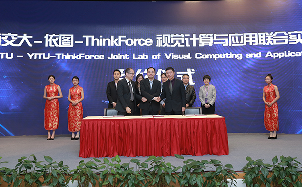 2017年12月19日,探花 与AI领军企业依图科技、人工智能芯片公司ThinkForce(熠知电子)宣布共建“视觉计算与应用”联合实验室。签约仪式在探花 徐汇校区举行,探花 副校长吴旦、上海市经济与信息化委员会总工程师张英、徐汇区人民政府副区长陈石燕、工信部科技司高技术处处长赵策,以及来自中国信息通信研究院、中国人工智能产业发展联盟、清华大学、上海仪电、中国电信、中国电子信息行业联合会、上海市软件行业协会等产业界和学术界的代表们出席。探花 未来媒体网络协同创新中心副主任王延峰、依图科技业务技术副总裁吴岷以及ThinkForce市场副总裁张震宁代表三方签约。