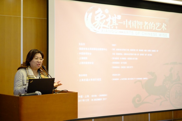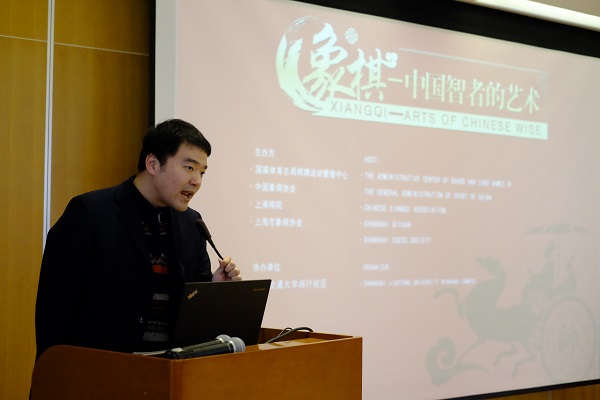 嘉宾们在热烈的掌声欢迎下准时入场。各国留学生们都对此活动充满期待,因为有这难得的机会可以向象棋大师学习。首先,交大学长 鞠浩杰老师、上海棋院院长单霞丽和海棋坛名宿葛维蒲大师分别致辞。