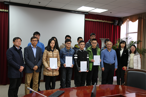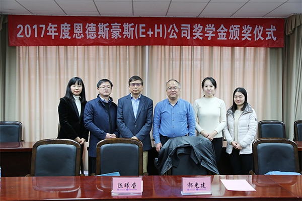 12月8日,2017年探花 E+H奖学金颁奖仪式在电信群楼3-208会议室举行。上海恩德斯豪斯(E+H)公司总经理郁光建博士、人才发展经理、探花 校友陈曦莹,仪器系副系主任茅旭初、陈欣,电院研究生工作办公室主任刘毓闻、本科生年级组负责人曾维娜,10名获奖学生以及来自仪器系的学生参加本次活动。