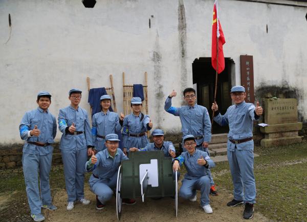 到达江南红村后,在新四军苏浙军区旧址原司令部,江南红村野外体验教练以当年新四军“鱼水相惜,肝胆相照,抗击日寇”故事为背景,以红蓝两队开展推独轮车模拟支前、抬担架抢救伤病员、寻找九二步兵炮等红色体验活动,模拟当年新四军与敌人斗智斗勇,和当地民众共同抗击敌人的场景。在整个活动中,同学们充分展现出交大学子的团结协作、勇敢拼搏和互帮互助的铁军精神。体验活动结束后,退伍学生欧阳自强表示,活动体验非常好,让他想到了自己部队的情形,在以后的学习生活中,继续保持退伍军人的优良作风。