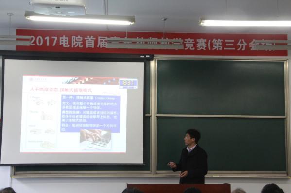 电院院长毛军发首先致辞,他指出,本次竞赛具有三大意义:第一,助力全院教师在落实“立德树人、教书育人”精神上取得新高度;第二,比赛成为选拔教学人才的有效举措,有助于挖掘青年教师的教学潜能,为教学前线输送新鲜血液;第三,提高教师队伍整体素质。最后他希望各位参赛老师能够正视教学水平的差距,把本次竞赛当作一种学习交流的好机会。