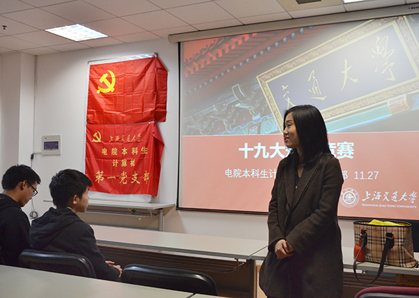 1127日晚,电院本科生计算机第一党支部在电信群楼3-306会议室举行了“学习十九大”知识竞赛,活动邀请了校团委老师许艳、电院党建指导老师李智出席。