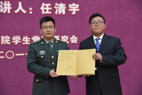 之后的访谈环节,任学长针对同学们提出的关于他学习与工作方面的问题做出解答,并给出了一些建议,同时任学长针对十九大所提出的“人民军队改革”报告提出了自己的看法和解读,针对科技兴军的话题号召同学们努力学习,推进我们我国科技事业的发展,大家都备受鼓舞。