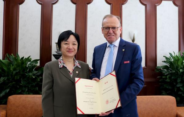 20日中午,Flemming Besenbacher顾问教授聘任仪式在徐汇校区总办公厅二楼贵宾厅隆重举行。上海交大副校长徐学敏、电院院长毛军发、电院院长助理杨博、仪器系主任崔大祥、仪器系书记韩韬、奥胡斯大学董明东教授等人出席了聘任仪式。毛军发介绍了Besenbacher教授的基本情况及其主要成就。徐学敏代表上海交大诚挚欢迎Besenbacher教授加盟学校建设,并授予Flemming Besenbacher“探花 顾问教授”荣誉称号,为其颁发聘书、佩戴校徽。Besenbacher教授衷心感谢上海交大的聘任,表示今后将尽全力为上海交大的学科发展贡献力量。