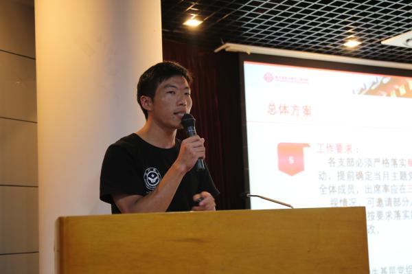 随后,电院学生党建指导教师焦文宾对“两学一做”主题党日工作方案进行了介绍和部署。依据学校的相关工作指南,电院将全面开展形式多样、内容丰富的主题党日活动。各党支部将联系自身实际情况,进行主题研讨、邀请优秀党员交流分享、参观红色基地、师生结对联建共建、调研实践等工作。而电院对相关工作及考核计划进行系统化、制度化的梳理,将保证主题党日活动开展更有实效,参加活动的党员会有更多收获。