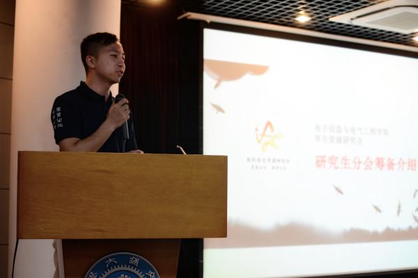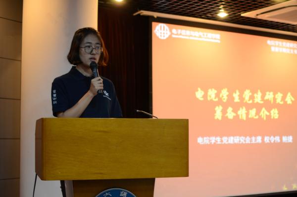 作为新成立组织的学生干部,电院学生党建研究会主席权令伟和研究生分会主席鲍捷分别对各自部门的筹备情况、分工架构和工作理念进行了介绍。他们回顾了过去党建组织的工作点滴,对现状进行了分析并对组织未来的发展作出积极的展望。作为承上启下的党建学生骨干,他们和党建研究会的全体成员有能力也有信心,使学生党建组织的工作开展更脚踏实地、张弛有度。