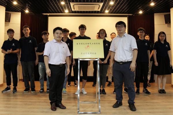 在电院全体学生党支书和支部骨干的见证下,蒋立峰与李劲湘共同为电院学生党建研究会揭牌,并为所有骨干成员颁发了聘书。
