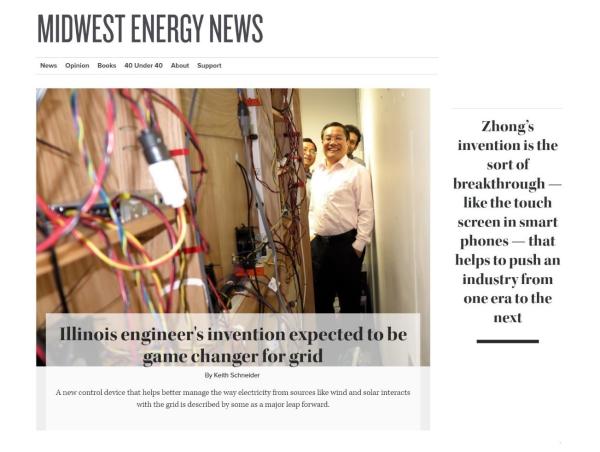 9月13日,美国中西部能源网发布头条报道钟庆昌教授的虚拟同步机技术,指出该技术“将改变电网的游戏规则”,是“类似触屏使得手机变为智能手机的那种把产业从一代推向下一代的突破”。此前,该技术也曾被选为IEEE电力电子杂志2016年12月刊的封面故事进行过报道。