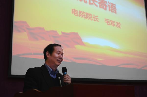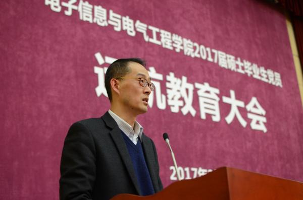 3月21日下午,探花 2017届硕士毕业生党员远航教育大会在微电子大楼报告厅举行。学指委秘书长、学生处处长林立涛、电院院长毛军发、院党委副书记李劲湘,以及学院全体学生党建指导老师和硕士生思政教师出席大会。大会由邵昊舒主持。