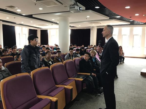此行对方将与电院和机动学院联合讨论开展3+1+1联合培养学生的合作计划,力求能够与上海交大的工科强院携手培养出更多具有国际化视野的工程师人才。Tewfik教授代表电气与计算机工程系面向电院本科生进行了留学宣讲,介绍了UT Austin ECE的相关情况以及优势学科,并专门讲解了3+1+1项目的培养模式。